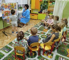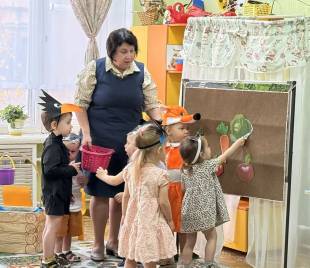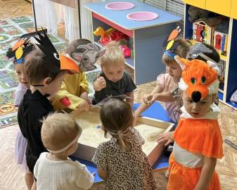 28 ноября  дети ясельной  группы «Золотые рыбки»  показали сказку «Лиса и козёл».  Ребята познакомились с новой русской народной сказкой «Лиса и козёл».  В один момент дети  превратились в артистов, одетых  в костюмы.  После рассказа сказки, чтобы немного отдохнуть, провели  пальчиковую игру  «Мы капусту рубим-рубим». Затем  покормили козлика  - играли в игру  «Что любит кушать козлик?».  Вспомнили названия овощей и фруктов. Также помогли лисе отыскать её бусы в «манке» на световом столе, которые рассыпались, когда она убегала, и пальцами  рисовали следы лисички. Играть и рисовать на  манке  любят все дети.   И в конце все дружно поиграли с погремушками. День прошёл насыщенно и плодотворно. Ребята получили хорошее настроение на весь день.