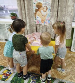 День Матери – это тёплый и сердечный праздник, посвящённый самому дорогому и близкому человеку. Спросите любого малыша, кто самый любимый человек на свете,  и непременно услышите: «Моя мама!».  Для своих детей мама неизменно становится идеалом – доброты, ума, красоты. Она дарит ребёнку всю себя: любовь, доброту, заботу, терпение. Мама – самый главный человек в жизни каждого из нас. В нашей группе «Золотые рыбки»,    воспитанники тоже любят поздравлять своих мам, готовили  для них подарки — открытки,  сделанные своими руками,  а также рисовали свои ладошки  на открытке. Рассматривали   маленький шедевр, созданный с любовью и старанием. В день матери мы хотим призвать всех:  давайте же подарим своим мамам кусочек солнышка, который будет оберегать их от всех невзгод.