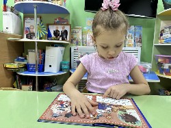 Дети с большим удовольствием смотрели мультфильмы «Бобик в гостях у Барбоса», «Незнайка на Луне», рисовали иллюстрации и отгадывали загадки, а интеллектуальные конкурсы чередовались с такими играми, как «Попади в шляпу», «Собери пазл», «Что лишнее?»
