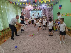 В преддверии празднования Дня отца в нашем детском саду в группах «Солнышко» и «Аленький цветочек» прошли спортивные праздники «Суперпапа».