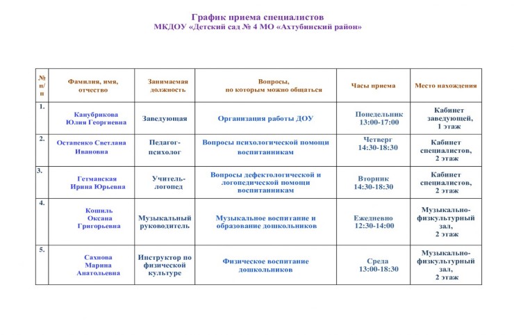 Порядок консультации: Прием родителей осуществляется в соответствии с графиком работы Консультационного пункта. Родители сообщают, какой вопрос их интересует, выбирается удобное время для посещения консультационного пункта. Исходя из заявленной тематики, администрация привлекает к проведению консультации того специалиста, который владеет необходимой информацией в полной мере. Консультирование родителей проводится одним или несколькими специалистами одновременно, в зависимости от сути проблемы.